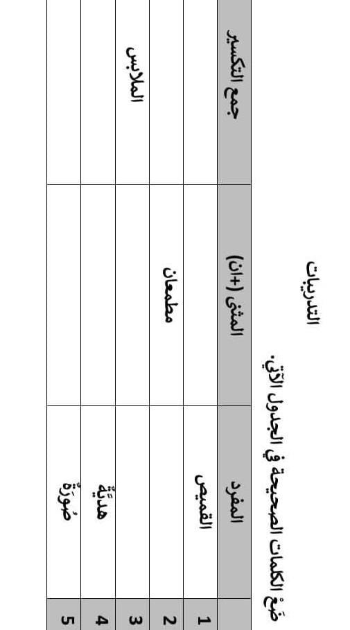 3- الملبس (مفرد) —> الملبسان(مثنى) —> الملابس (جمع تكسير)
