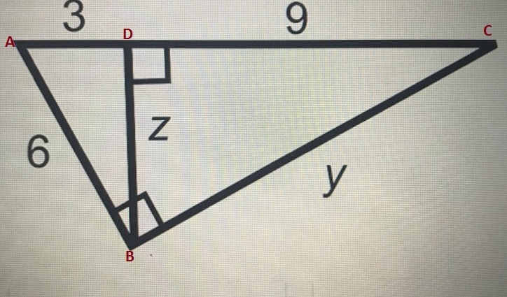 length of AB =6 unit , length of BC =y unit and the length of AC = 3+9 =12 unit