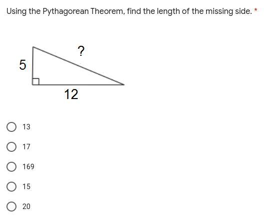 edge to find = apartment (5^2 + 12^2) = 13