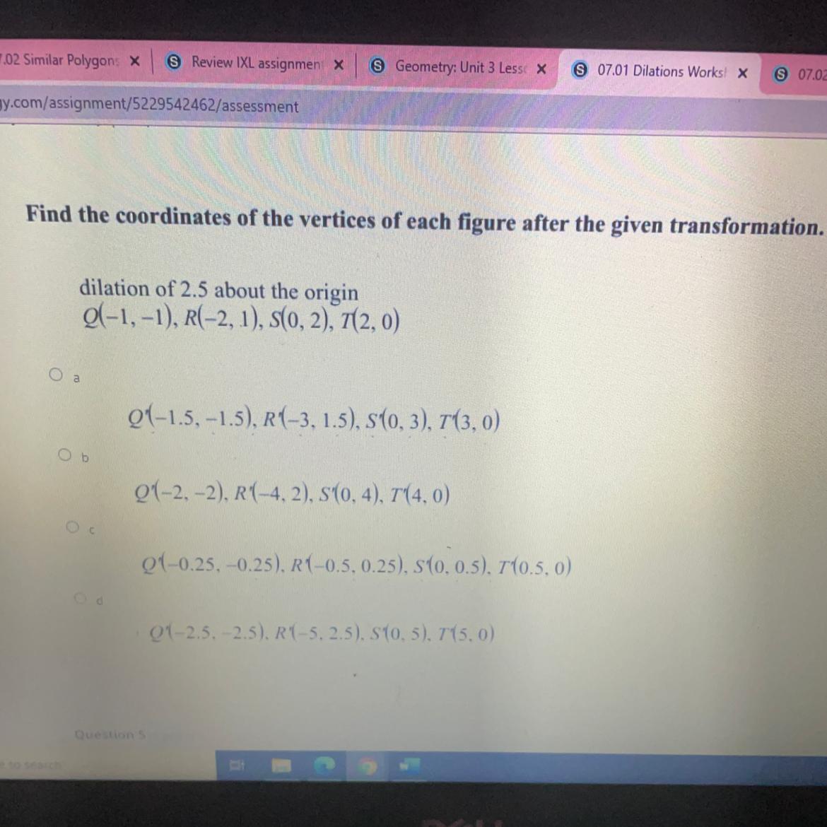 Q'(-2.5 ,-2.5), R'(-5, 2.5), S'(0, 5), T'(5,0)