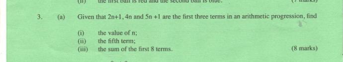 (iii) sum = 5 + 8 + 11 + 14 + 17 + 20 + 23 + 26