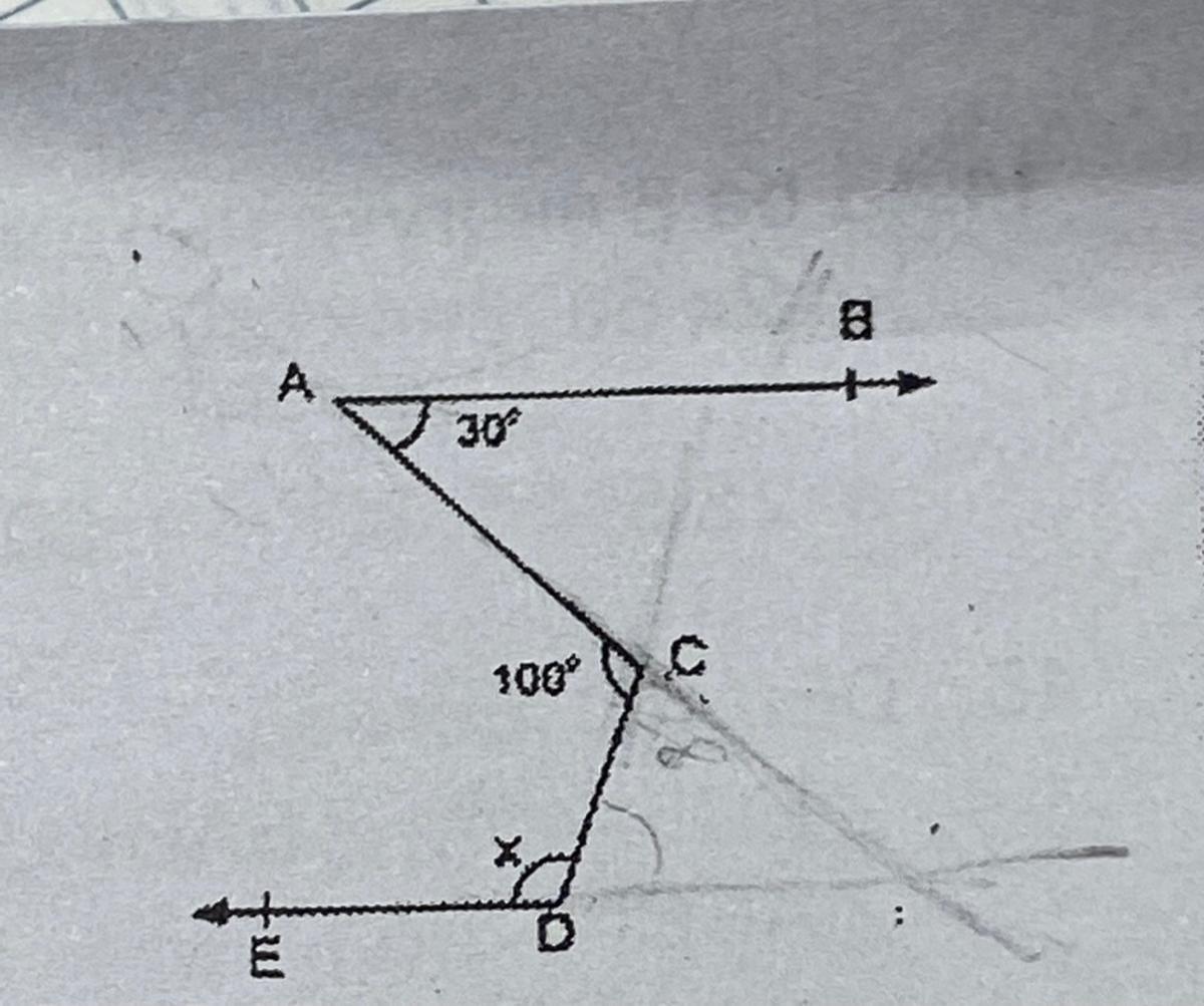 AB//DE; BAC = 30 degrees; ACD = 100 degrees; CDE=?