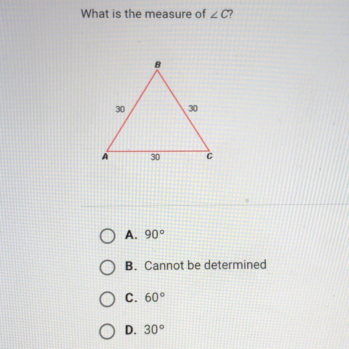 50 degrees - 30 degrees = 20 degrees.