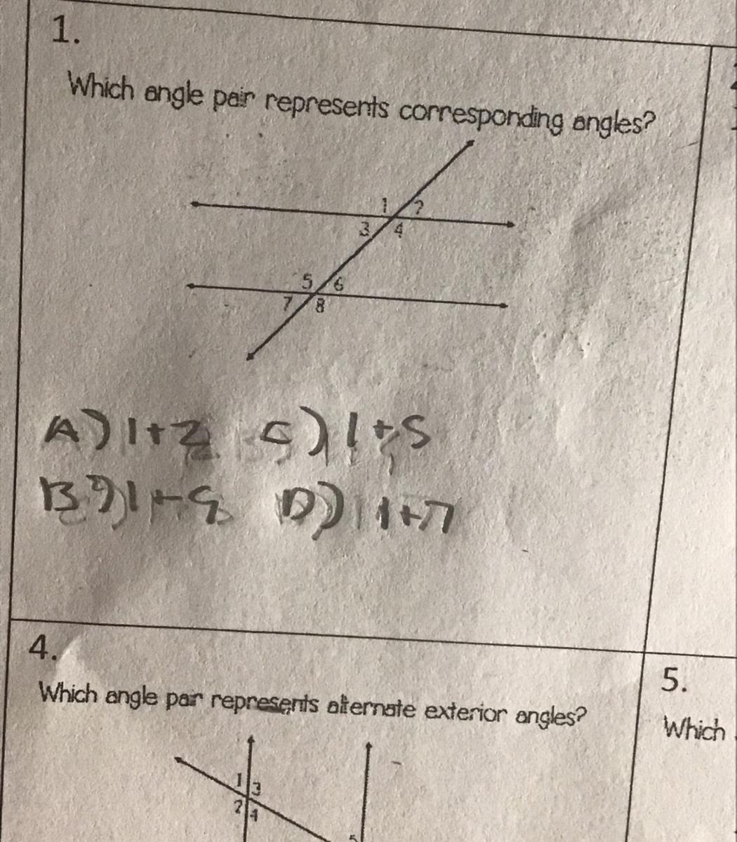 Corresponding Angles: Are the angles that hold the same/relative position as another angle
