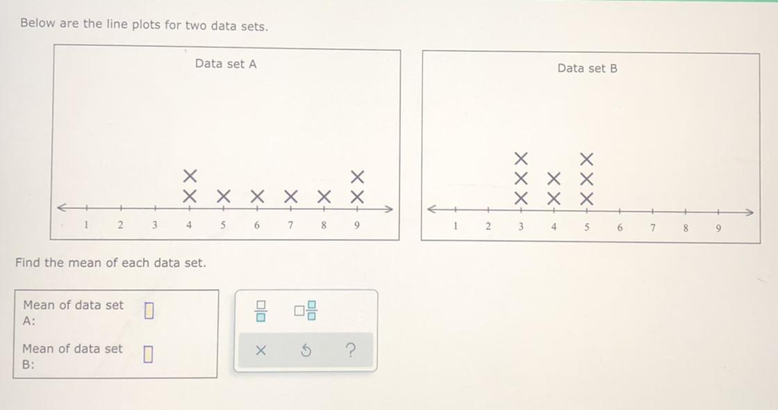 For Data set B, do the same. 3 + 3 + 3 + 4 + 4 + 5 + 5 + 5 = 32 32 ÷ 8 = 4