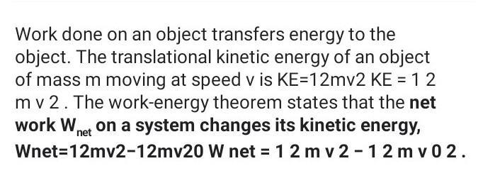 Alternatively, one can say that the change in kinetic energy is equal to the net work done on an object or system.