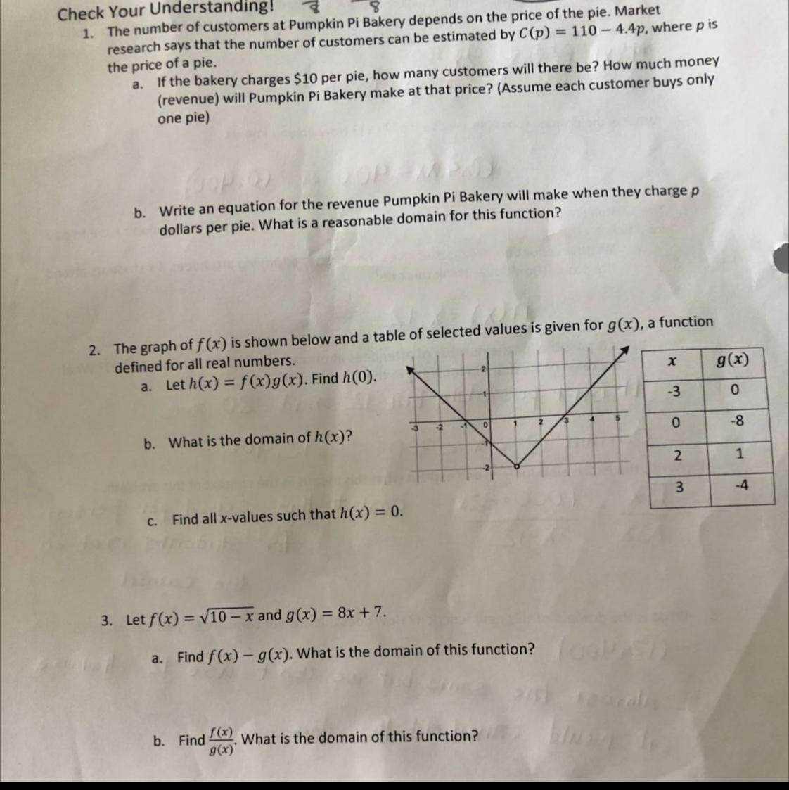 a. to find number of customers for a price of 10$ per pie is, you put 10 in the given equation C(p) = 110-4.4x(10) = 110-44= 66.