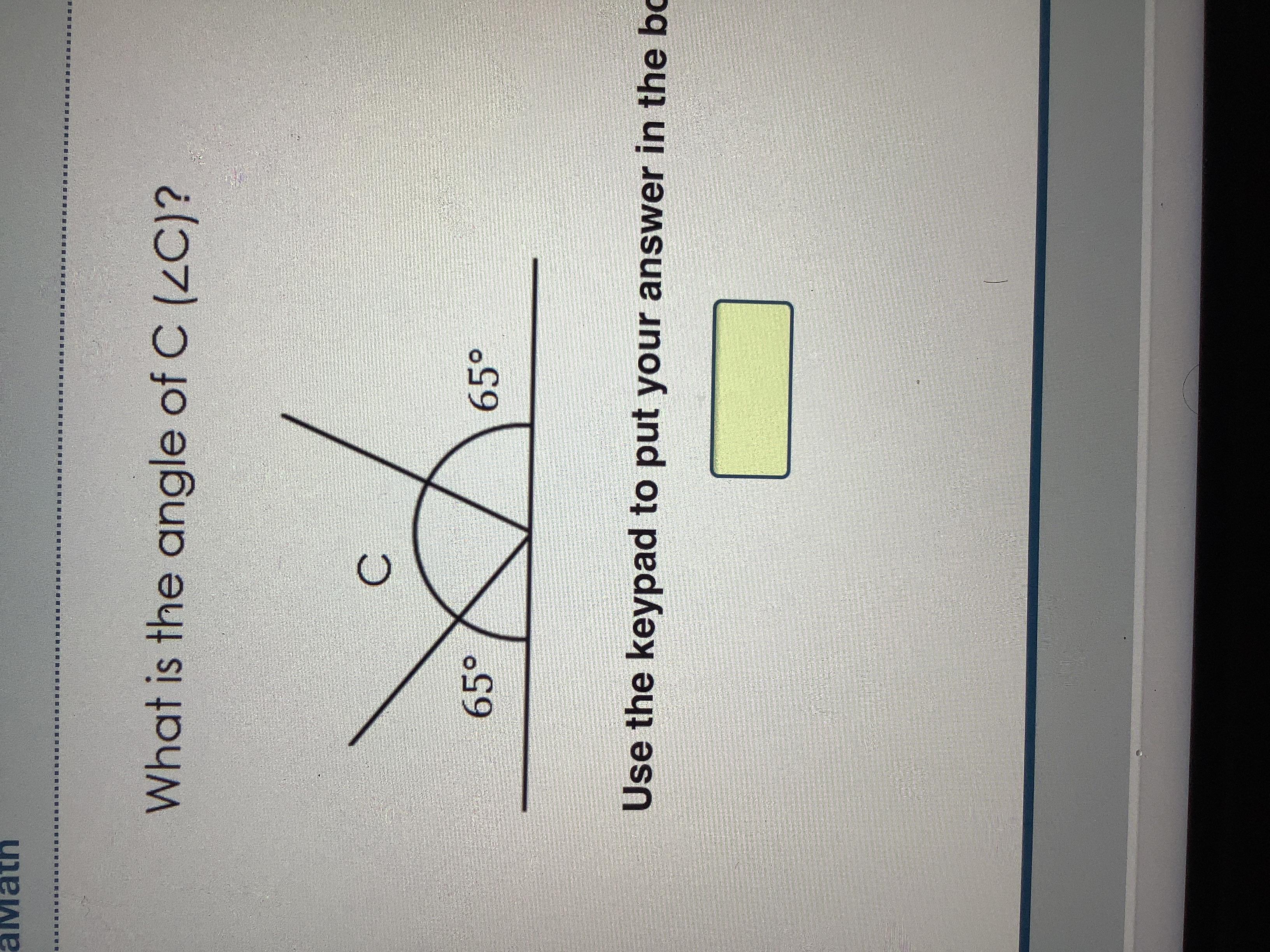 So now let's apply what we've learned to the problem. We have a straight angle that is composed of two 65° angles and an unknown C angle. We know that when angles add up to 180°, they're supplementary angles.