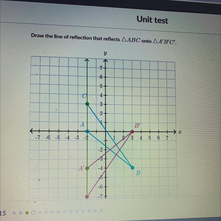 Draw the line of reflection that reflects AABC onto AA'B'C'.
