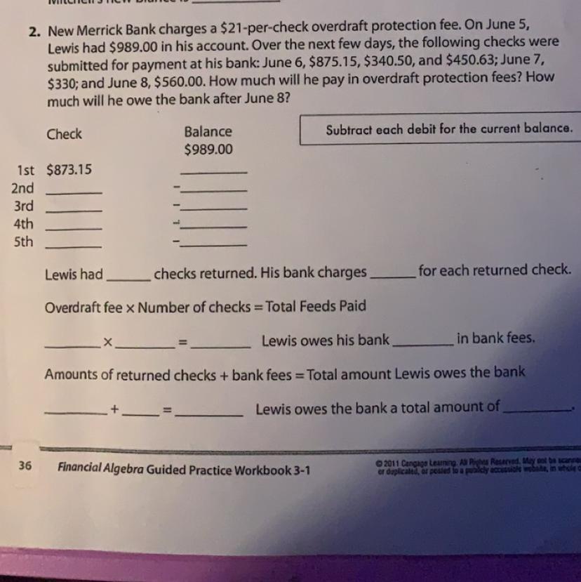 2. New Merrick Bank charges a $21-per-check overdraft protection fee. On June 5,