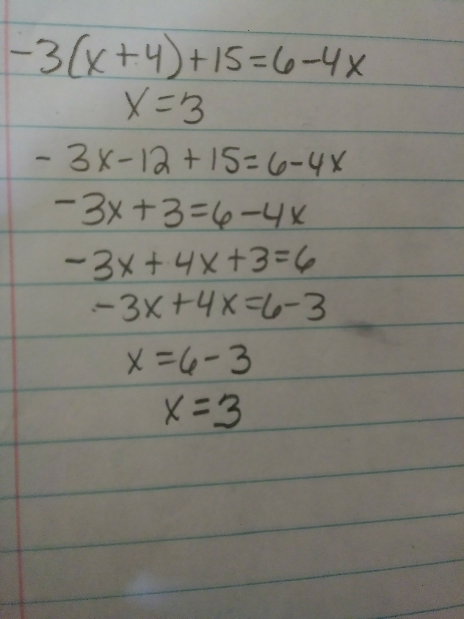 I did the whole problem for you and the answer is x=3