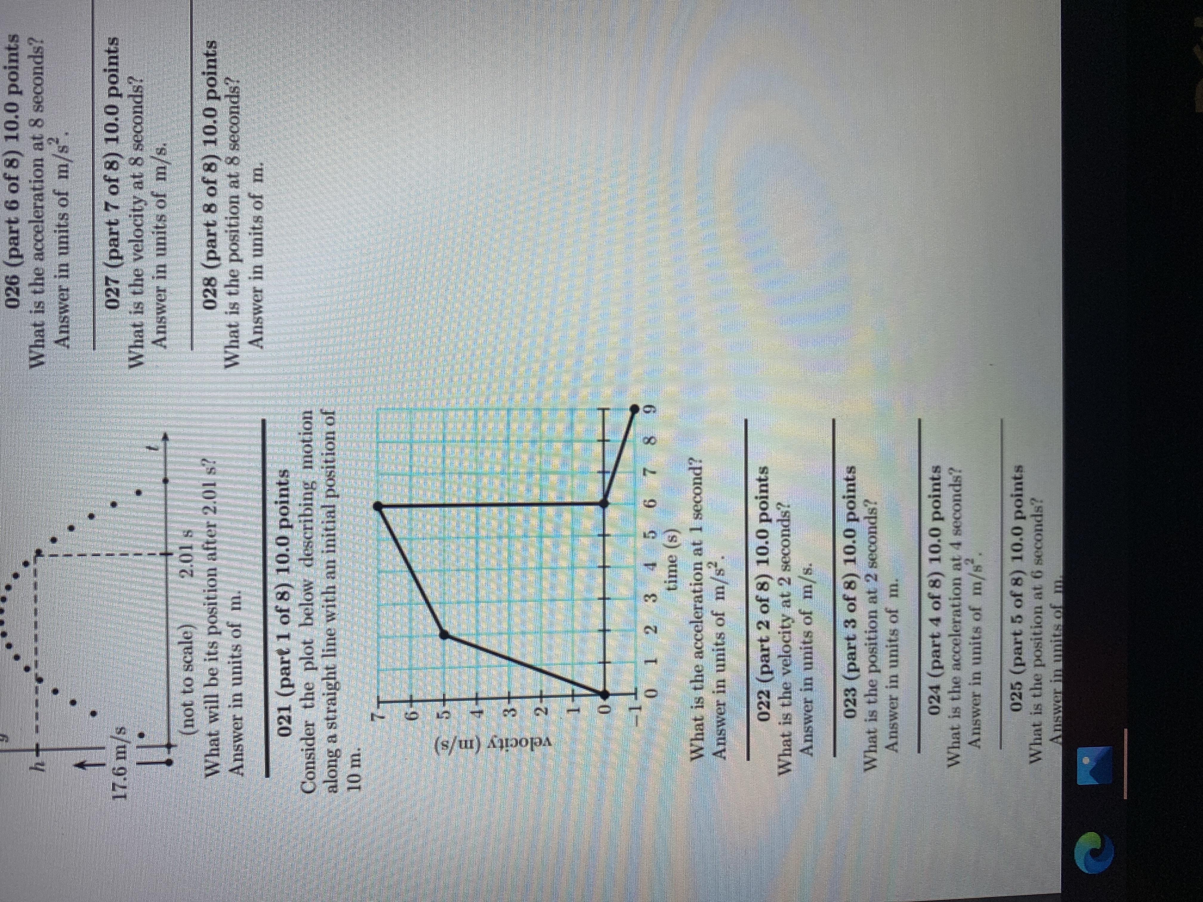 and so its position after 8 s is