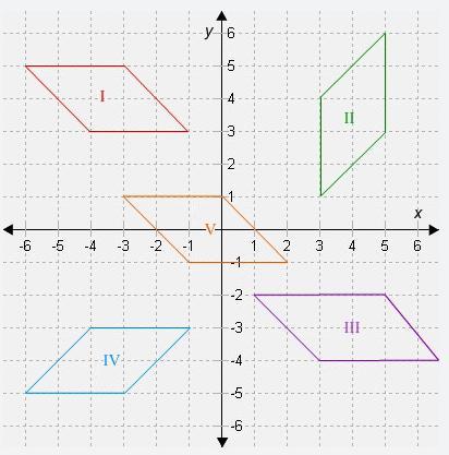 Yes, there is. The shape I have the same measure that shape V, so if you do a translation adding 3 units in every x-coordinate and subtracting 4 in every y-coordinate of shape I it will be in the same place that shape V