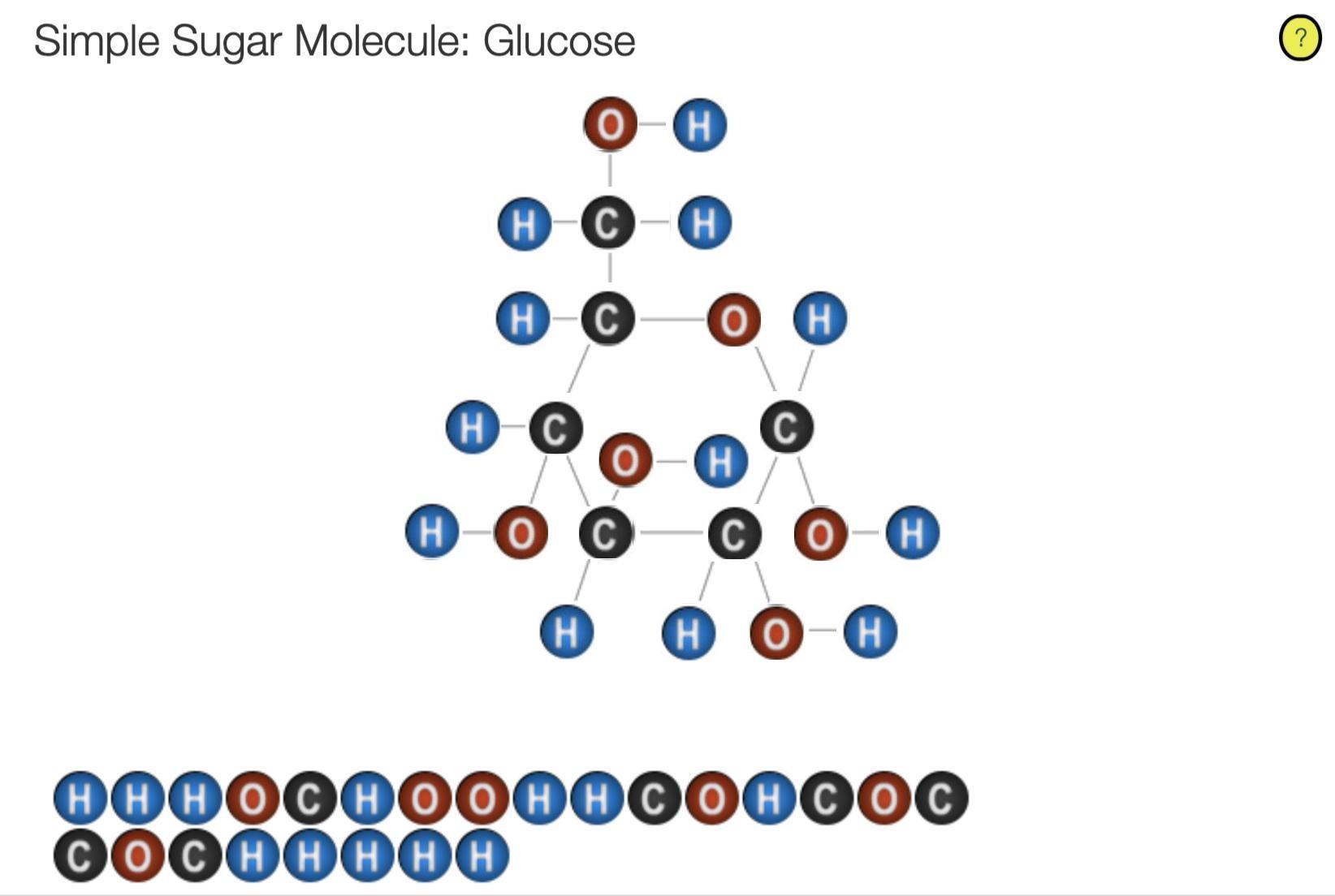 <em>You will find the complete glucose molecule in one of the attached files (named glucose), plus the linear and cyclic structure in the other file (named glucose1). </em>