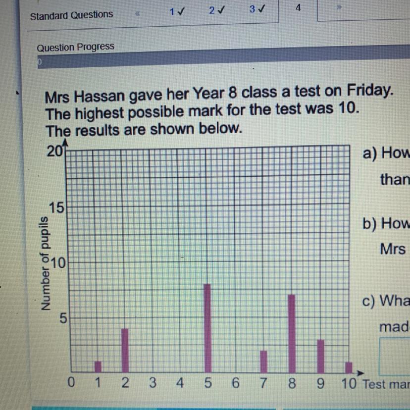 a) The number of pupils who scored more than 7 in a test = pupils who shored 8 + pupils who shored 9 + pupils who shored 10