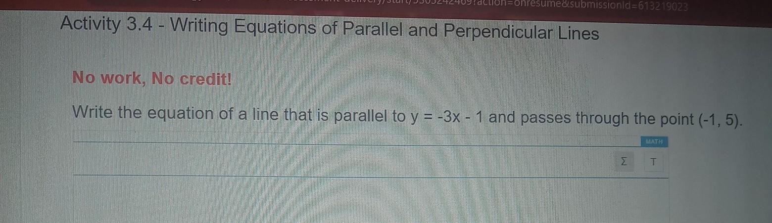 Therefore, the slope of the parallel line is also -3, but we need to find the y-intercept given the point (-1,5) so the line passes through it: