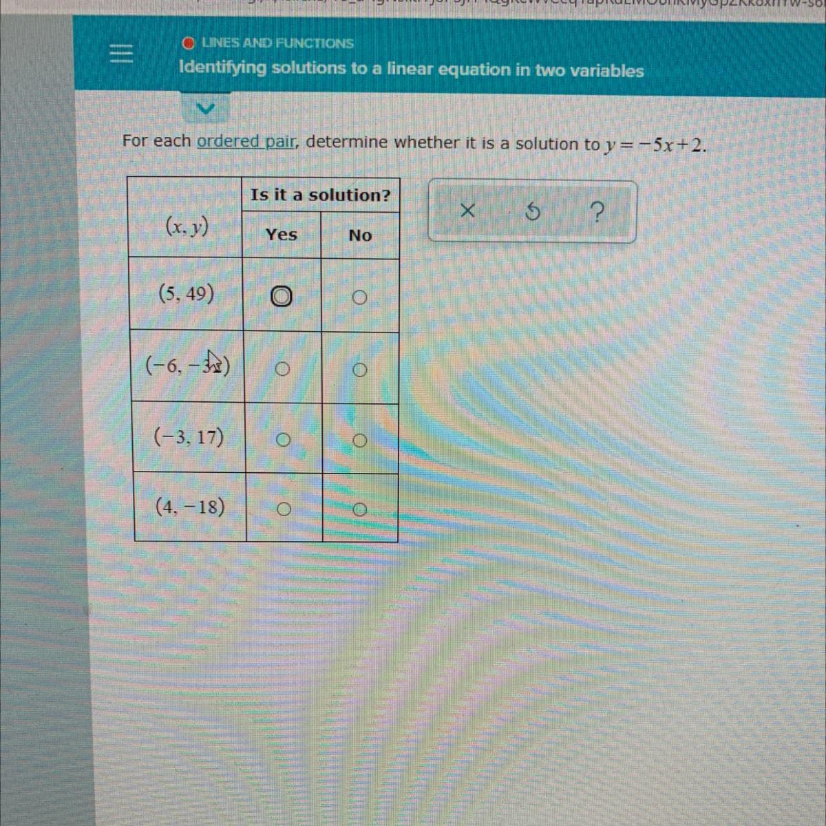 Since that's not the y-value in (5,49), then (5,49) is not a solution for the equation.