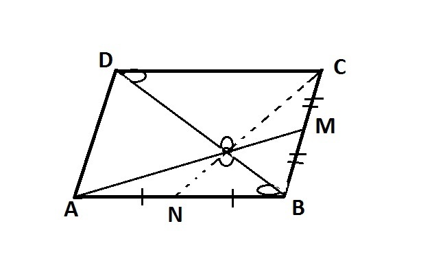 Here, ABCD is parallelogram, point M is the midpoint of the side BC , point O is the intersection point of the segment AM and diagonal BD.