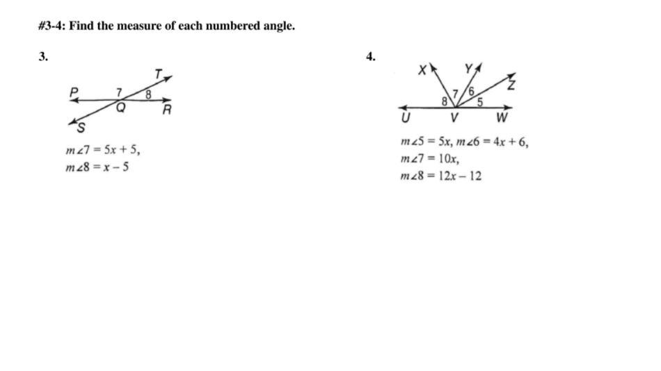 Plug in x = 30° to find the value of m< 7 and m< 8: