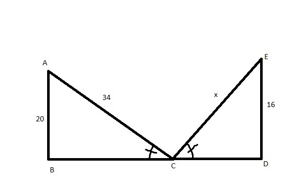 IN ΔEDC perpendicular = ED=16 inches and hypotenuse = EC=x inches