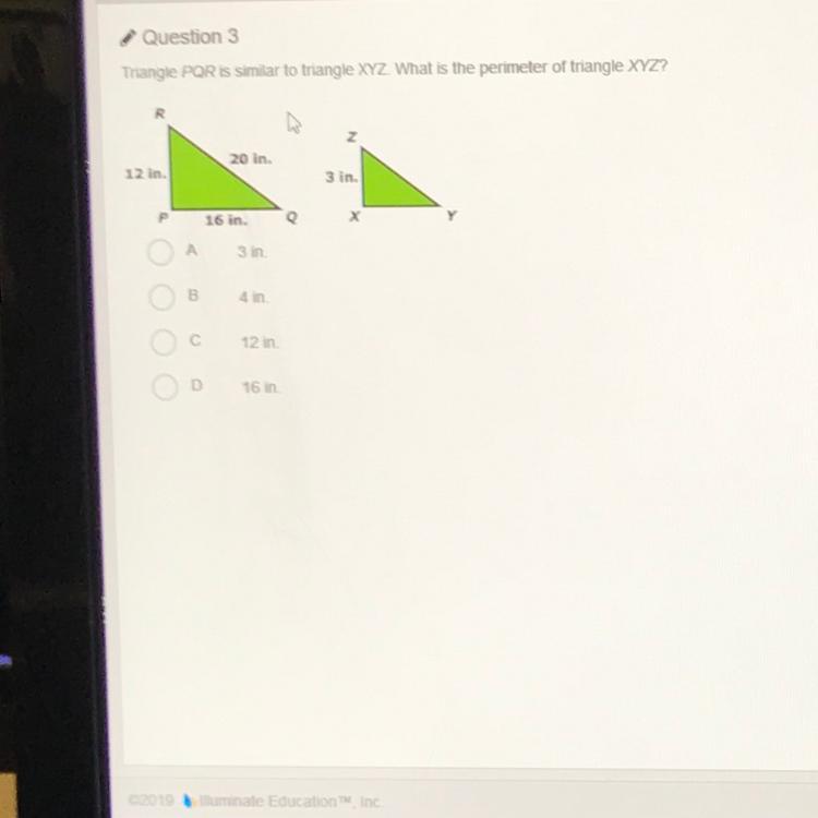 Therefore, the perimeter of triangle XYZ is, 12 in.
