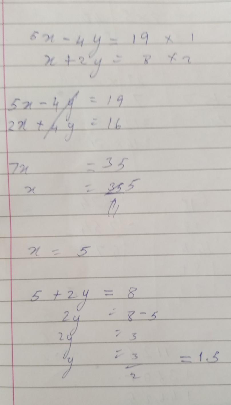 the answer is x= 5 and y = 1.5