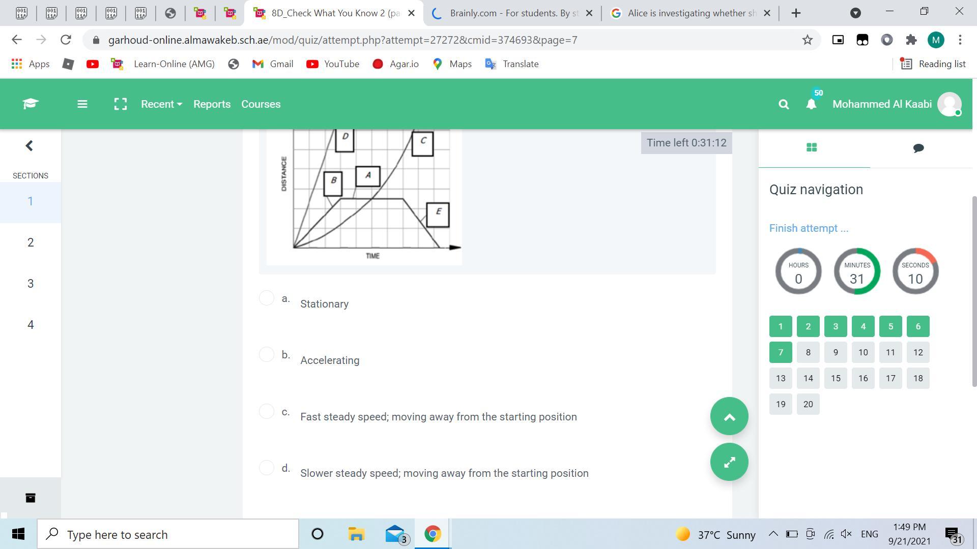 Part CThe child will stay in place at point A when centrifugal force and force of gravity are in balance: