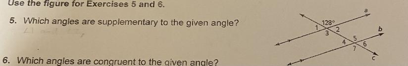 5. Which angles are supplementary to the given angle?
