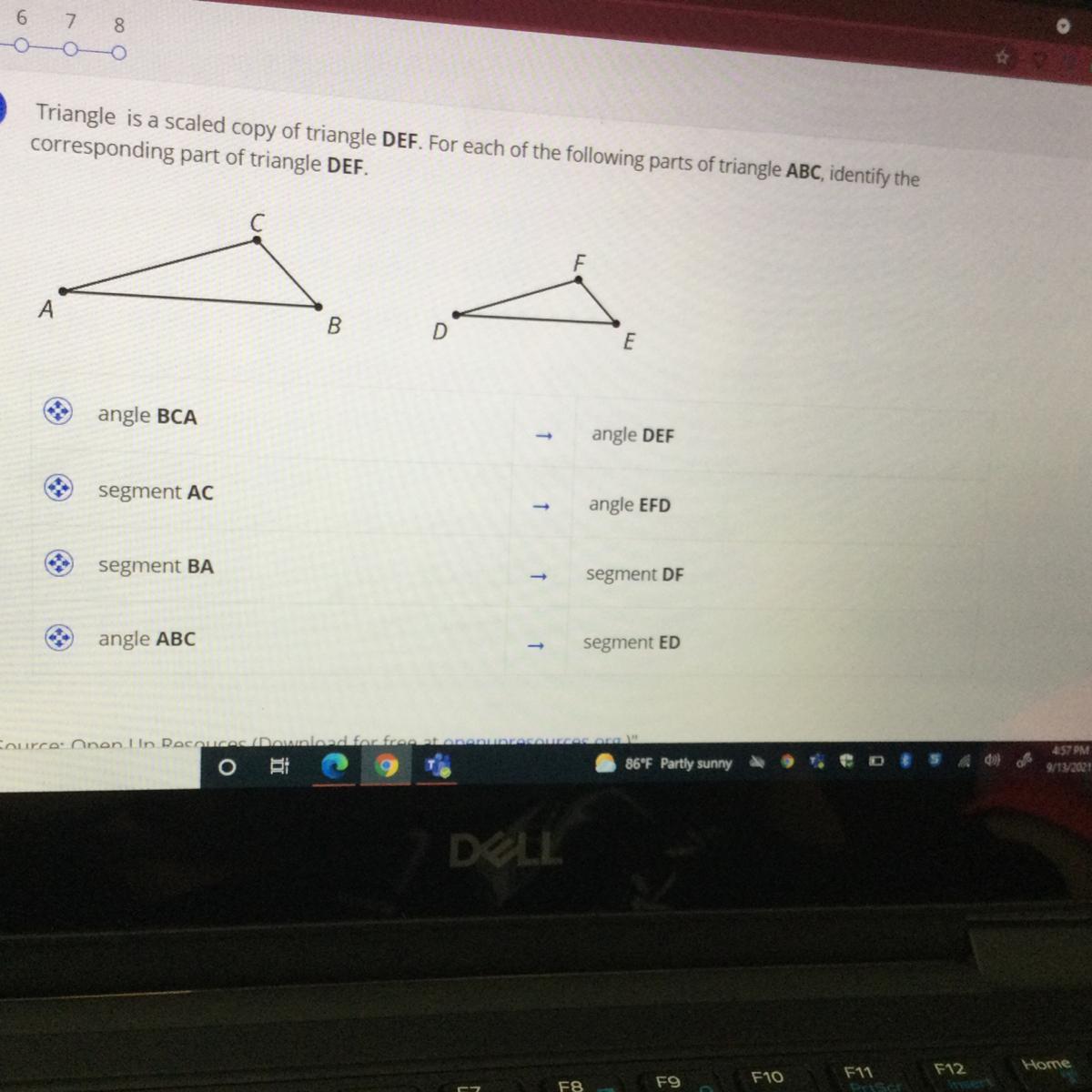 angle BCA to angle EFD