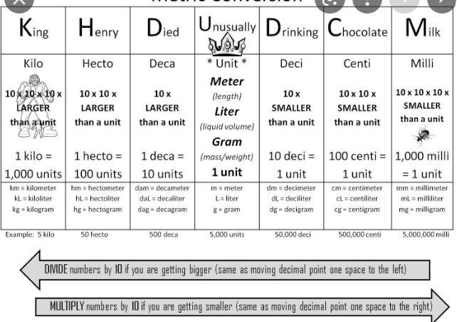 ex if your tryng to get to a kilometer you multiply by 1000, but if you want centimeter, you divide by 1000