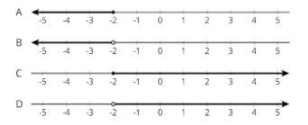 -2 is not included so it is an open dot, and answers include all numbers greater than -2 so the answer will be D. Hope this helps!