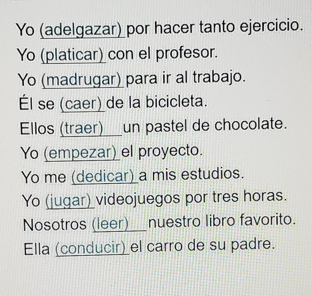 1 usted. 2 Yo ceno en el restaurante francés. 3 el toma el café 4 tú quiere las papas fritas