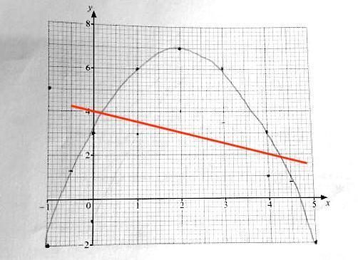Where this line crosses the graph you have, the x-coordinates are the solutions of the equation -1 +9/2x -x^2 = 0.