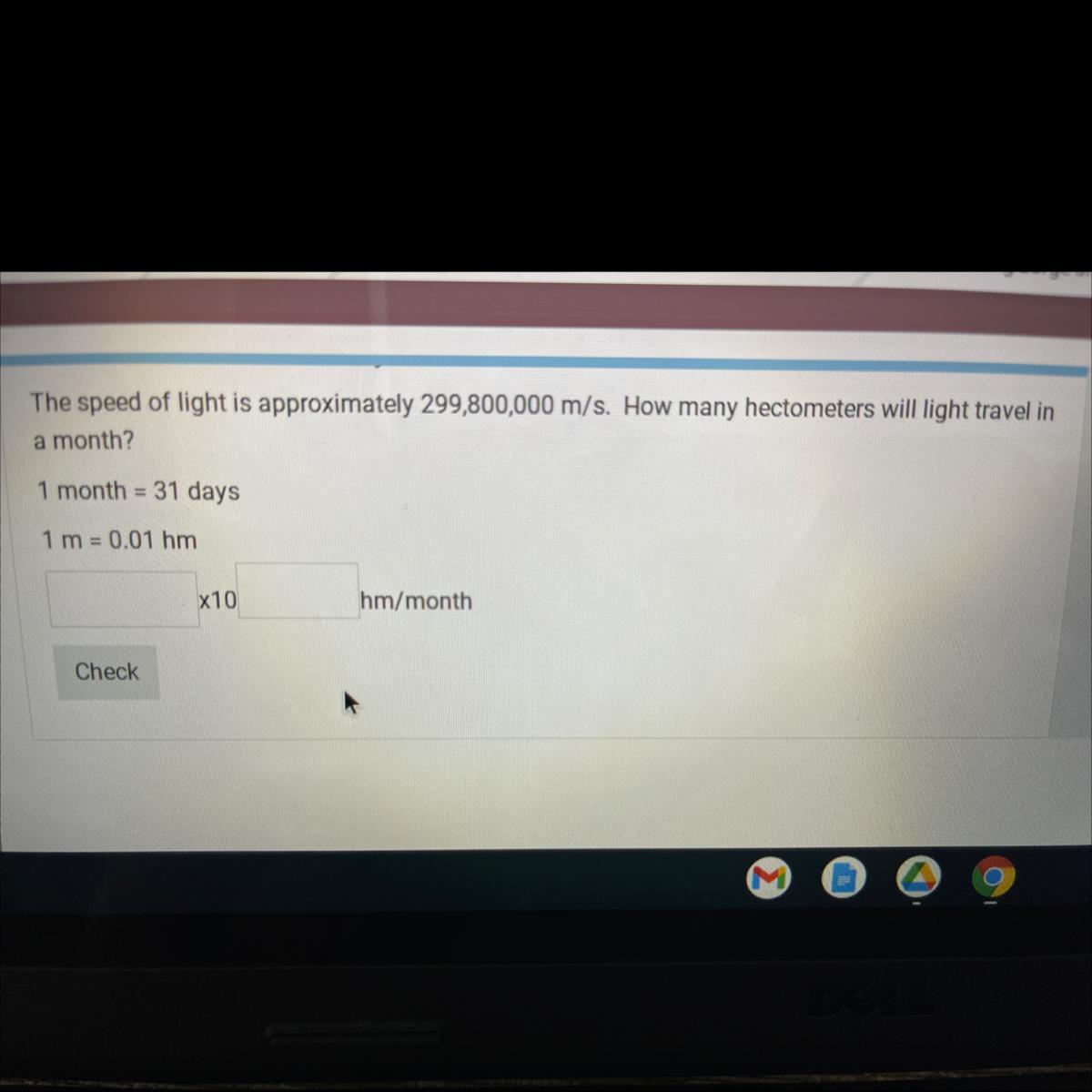 If the speed of light is 299,800,000 m/s, then converting to hectometer, we have the speed of light to be 2,998,000 hm/s