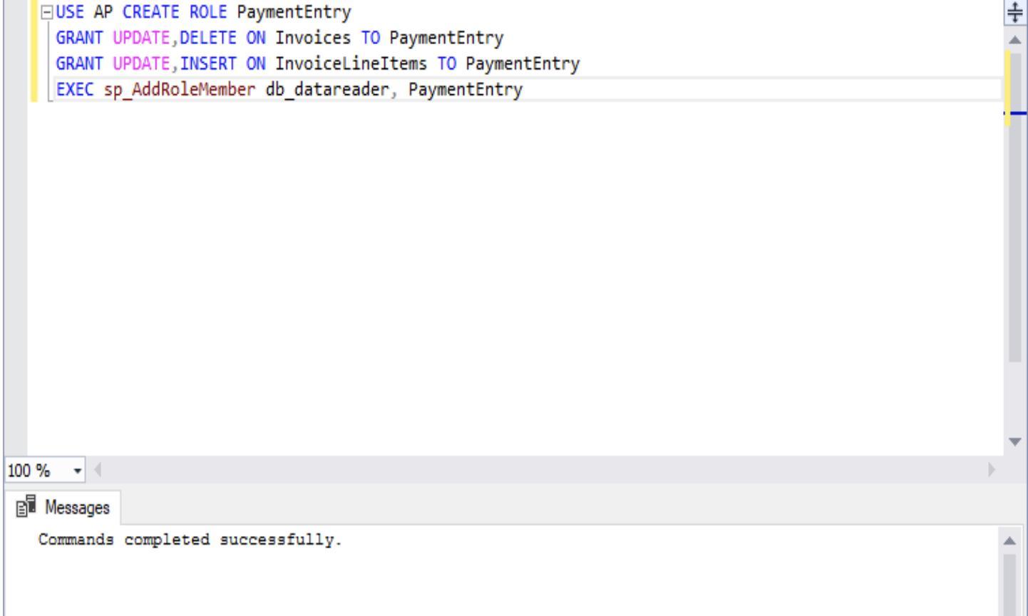 USE AP CREATE ROLE PaymentEntry