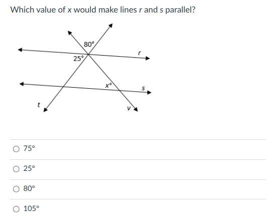 Whenever two lines cross we get congruent opposite angles and supplemental adjacent angles, i.e. they add to 180 degrees.
