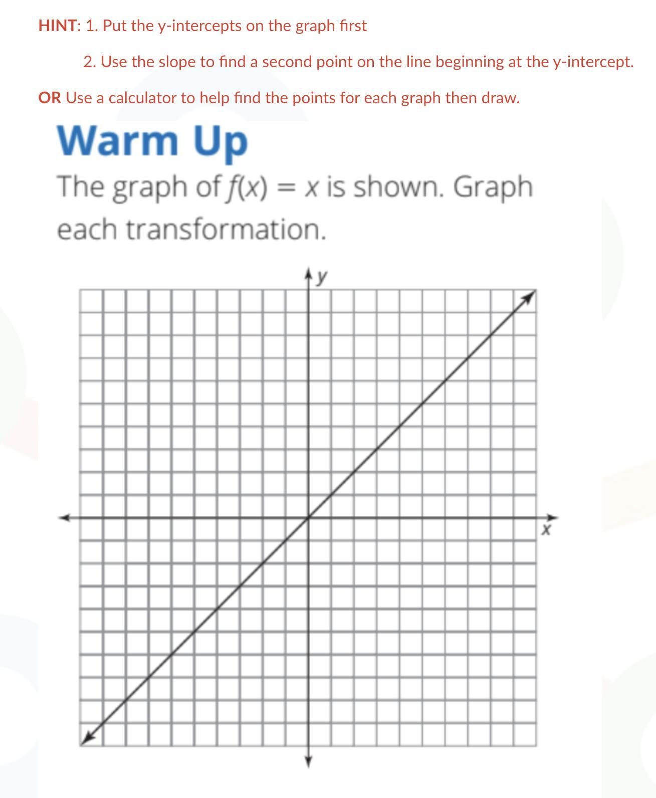 To start, we can find the y-intercept, which is, again, the value of y (or h(x)) when f(x) = 0:
