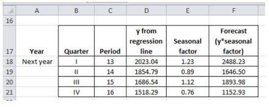 Forecast demand = a + bt = 4210.29 + 168.25t