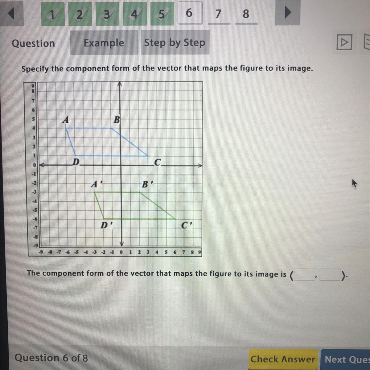 The component form of the vector that maps the figure ABCD to its image A'B'C'D' is <3, -7>
