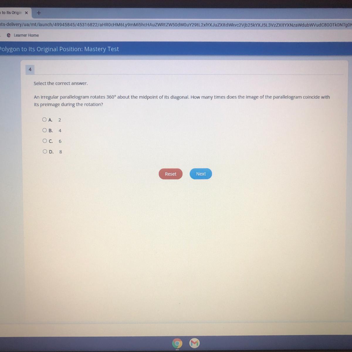 Rotating a figure about the midpoint of its diagonal, the figure will coincide with its pre-image two times: at 180° and at 360°.
