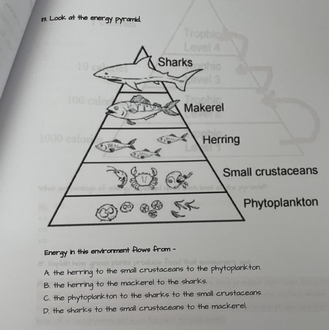 I think is B. the herring to the mackerel to the sharks.