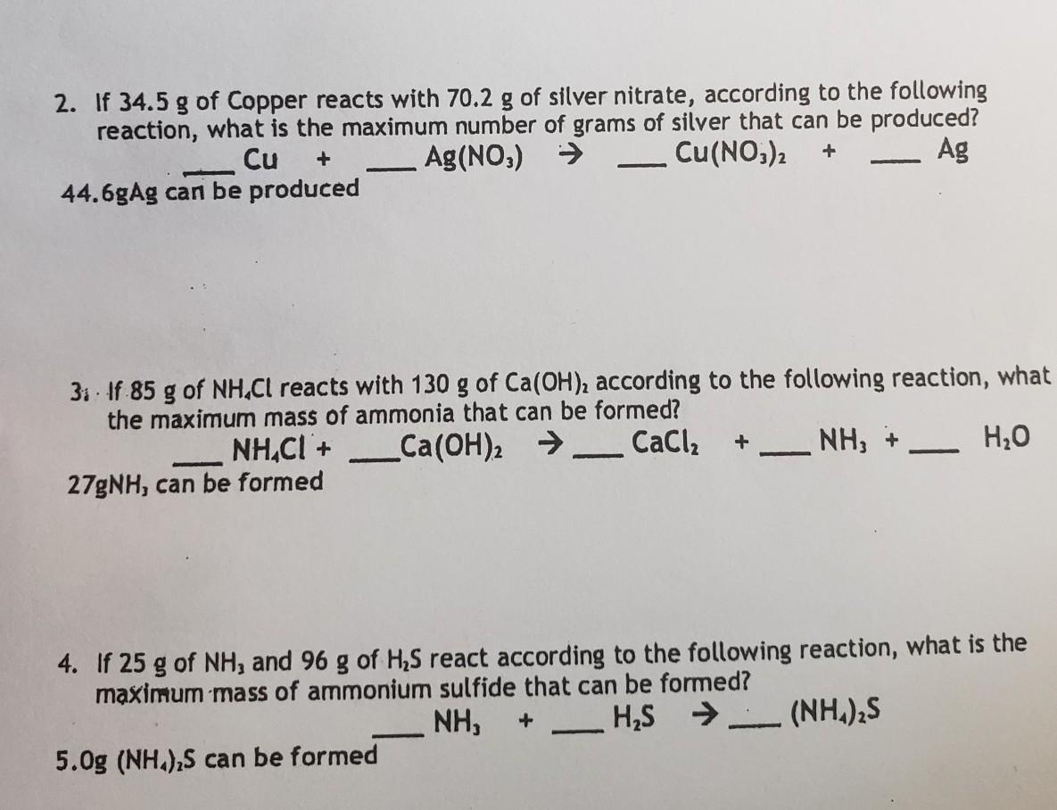 1Cu + 2AgNO3 → 1Cu(NO3)2 + Ag