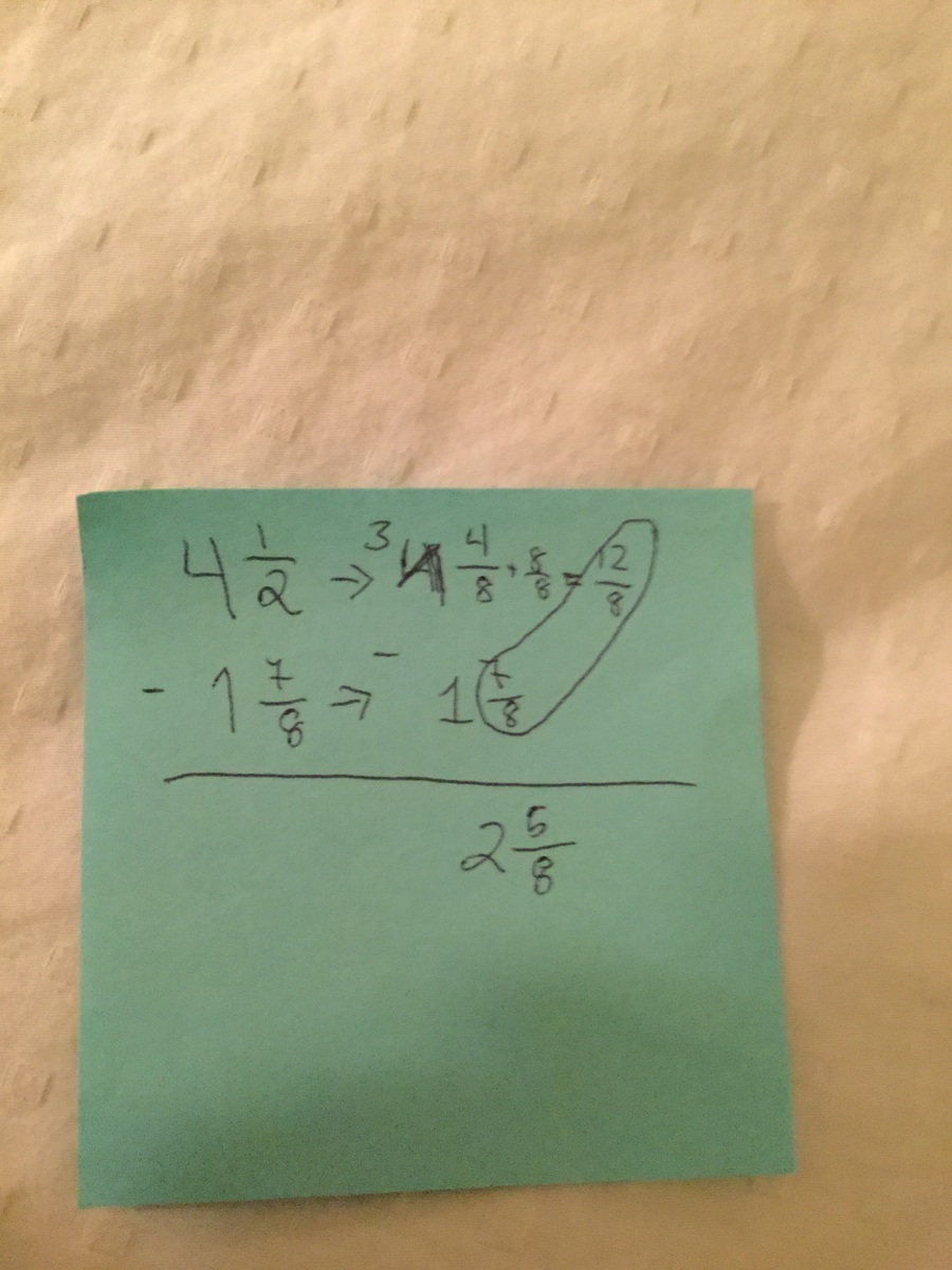 You have to find the difference between 4 1/2 and 1 7/8, in other words subtract those. MAKE SURE YOU SUBTRACT 4 1/2 MINUS 1 7/8, IF YOU DO IT THE OTHER WAY AROUND, IT WILL IMPACT YOUR ANSWER.