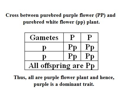 Like in this case, the offspring had purple flowers. Thus, the purple flower is a dominant trait.