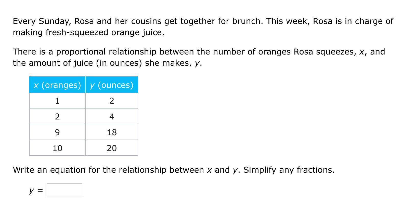 Therefore the equation for the relationship between x and y is