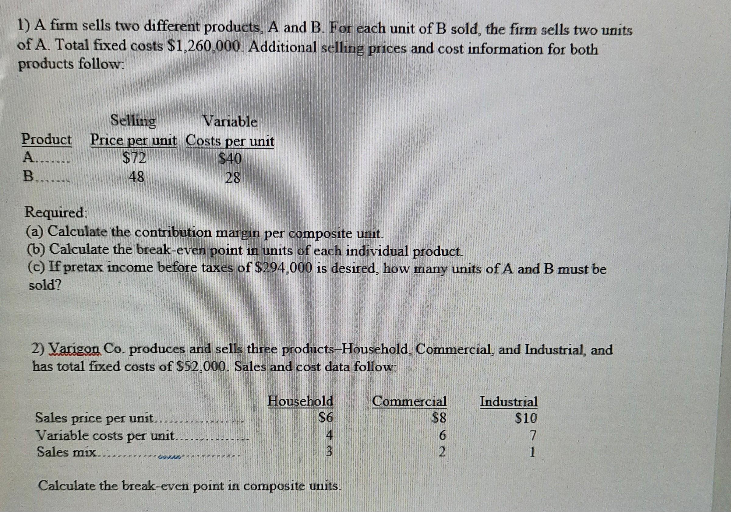 (b) The break-even point is the number of composite units that have a total contribution margin equal to the total fixed costs:
