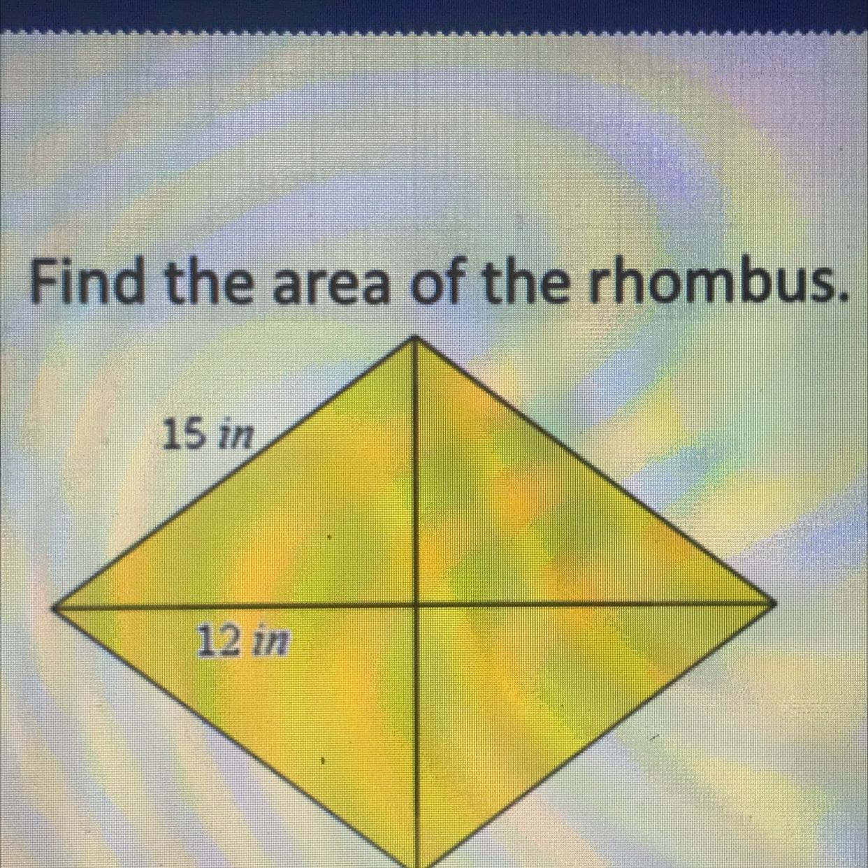 4*54 = 216 square inches is the area of the rhombus.
