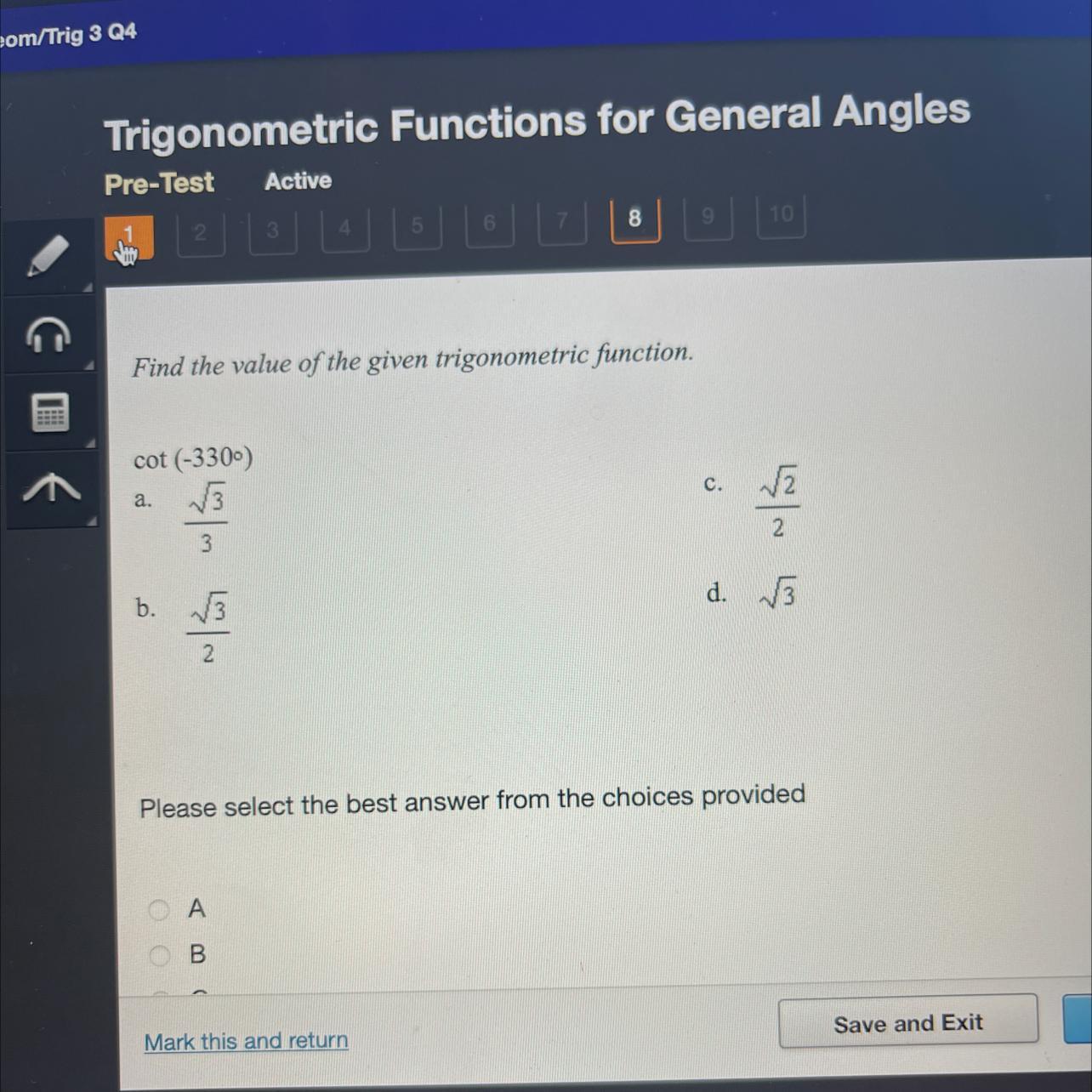 Tan30 = sqrt(3)/3
