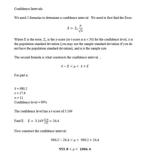We need to construct a 99% confidence interval from our sample data. The sample size is 11, so we will use t-distribution. Our degrees of freedom are 10, our t-value we will need is: 3.169