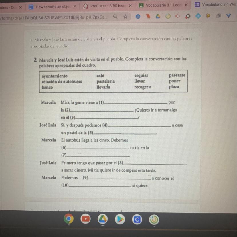 Marcela y José Luis están de visita en el pueblo. Completa la conversación con las